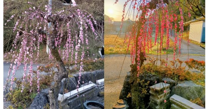 春の兆し。同じ「しだれ梅」でも。光で別物に!