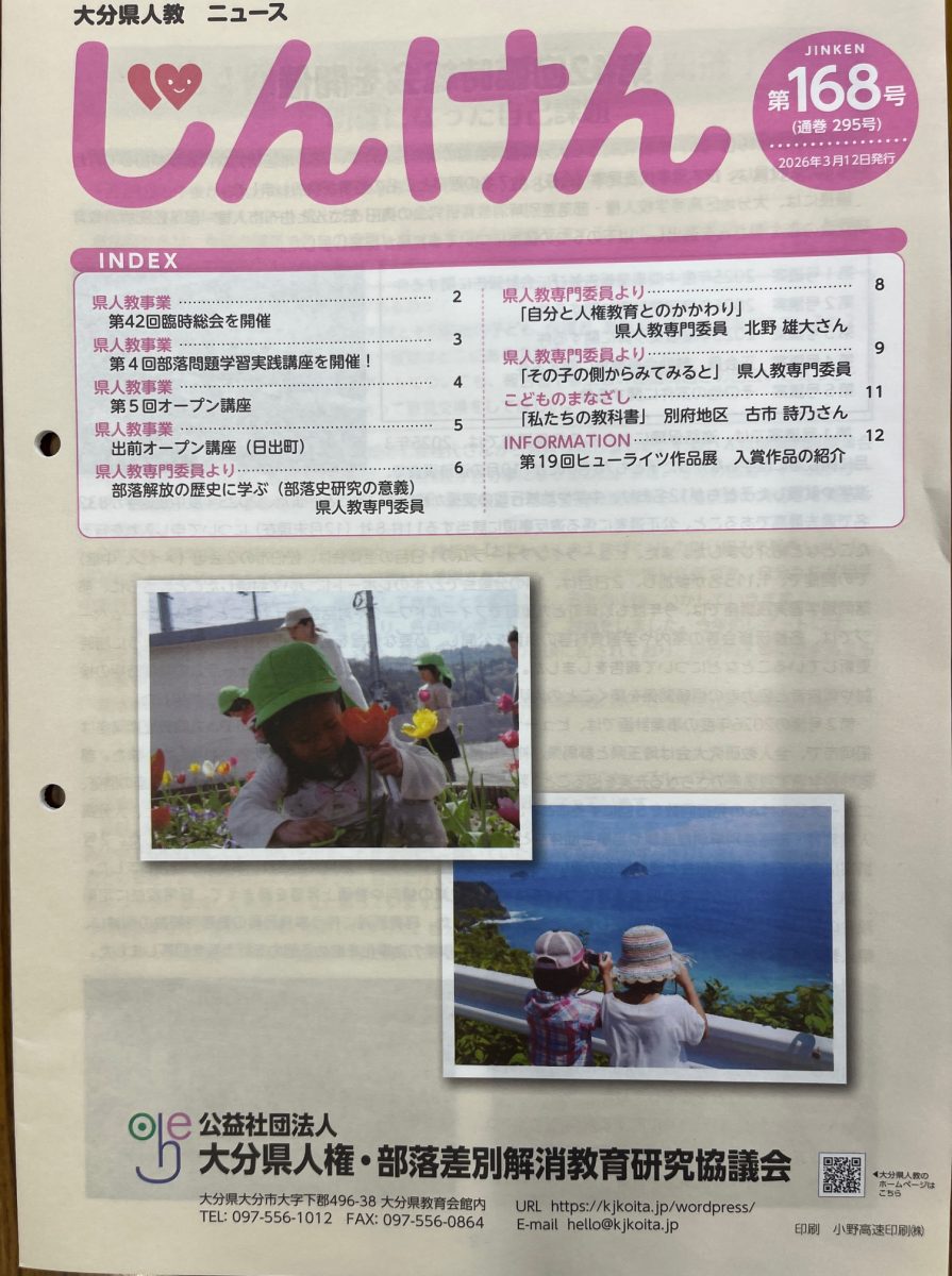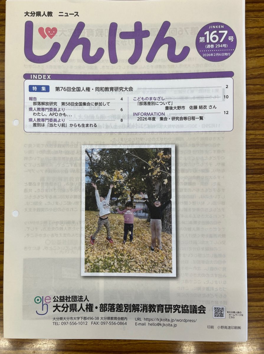 この冊子は大分県人教に加盟する大分県内の特別支援学校・小学校・中学校に通う小6・中2・中3の保護者、中3の子どもたち、県人教会員に配布しているものです。